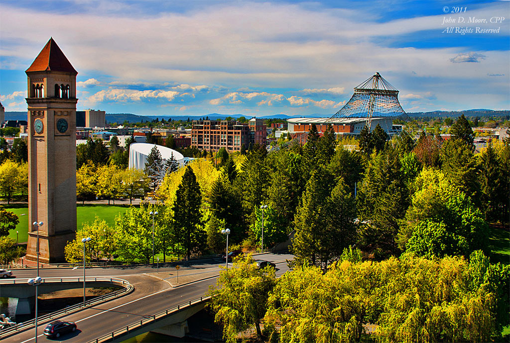 Rooftop view of the Clocktower in Spokane's Riverfront Park.